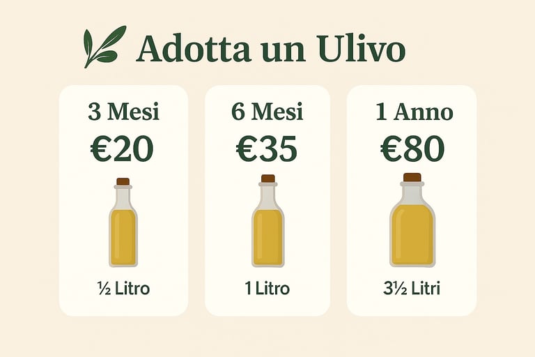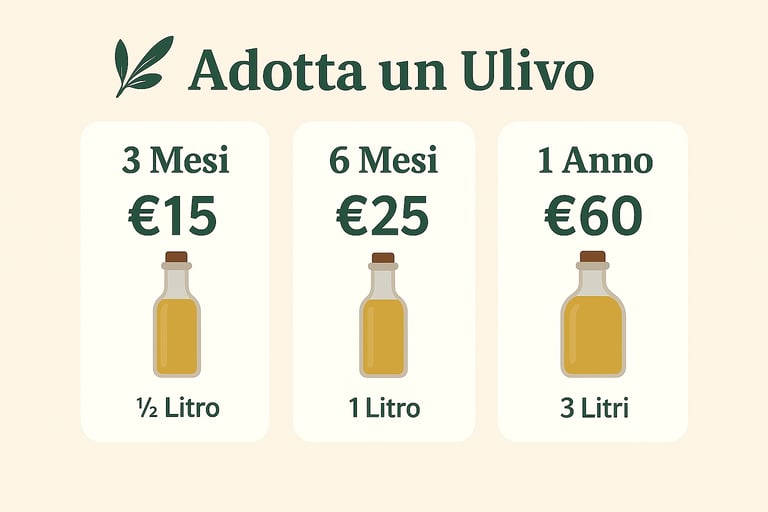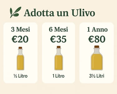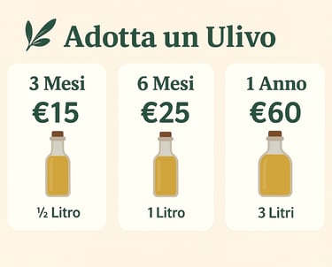 Per ogni ulivo che scegli di adottare riceverai l’olio extra vergine prodotto dal suo raccolto.
